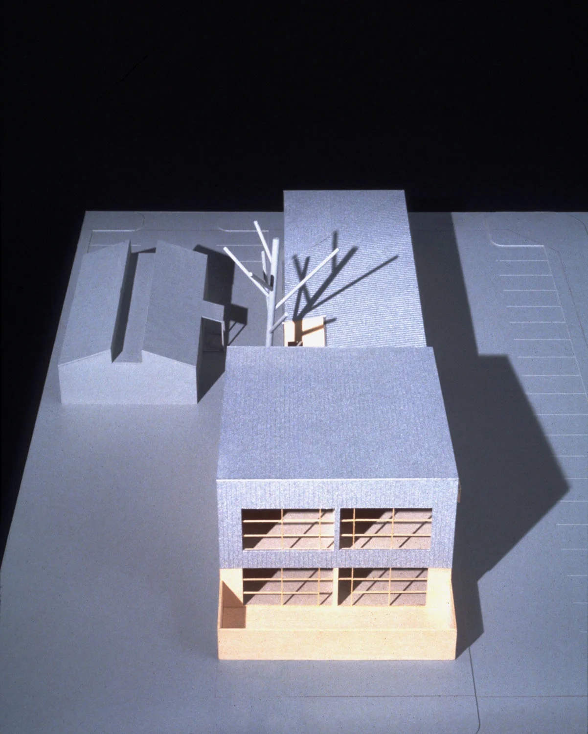 The 9,000 sq. ft. building replaces the League's existing inefficient bungalows and retains a metal shed added in the 1970s. The design solution places the two main programs (studios and public gallery) opposite one another and links them through a common circulation and entrance median. The building wraps around an integral courtyard, which works as a sculpture garden, temporary exhibition area, and garden where a venerable pecan tree presides. The main elevation extends longitudinally to almost 200 feet establishing a prominent presence along Montrose Boulevard. The parking zone, framed by a row of densely planted oak trees, parallels the length of the building. This wall of trees filters the intense west light and heat, providing shade along Montrose. The parking area becomes more like a garden in contrast to the ever-present concrete voids found everywhere in the city. The steel frame structure is infilled with concrete masonry units with a smooth stucco exterior finish, aluminum window units, galvanized steel roofing and wall panels, and sealed concrete floor.